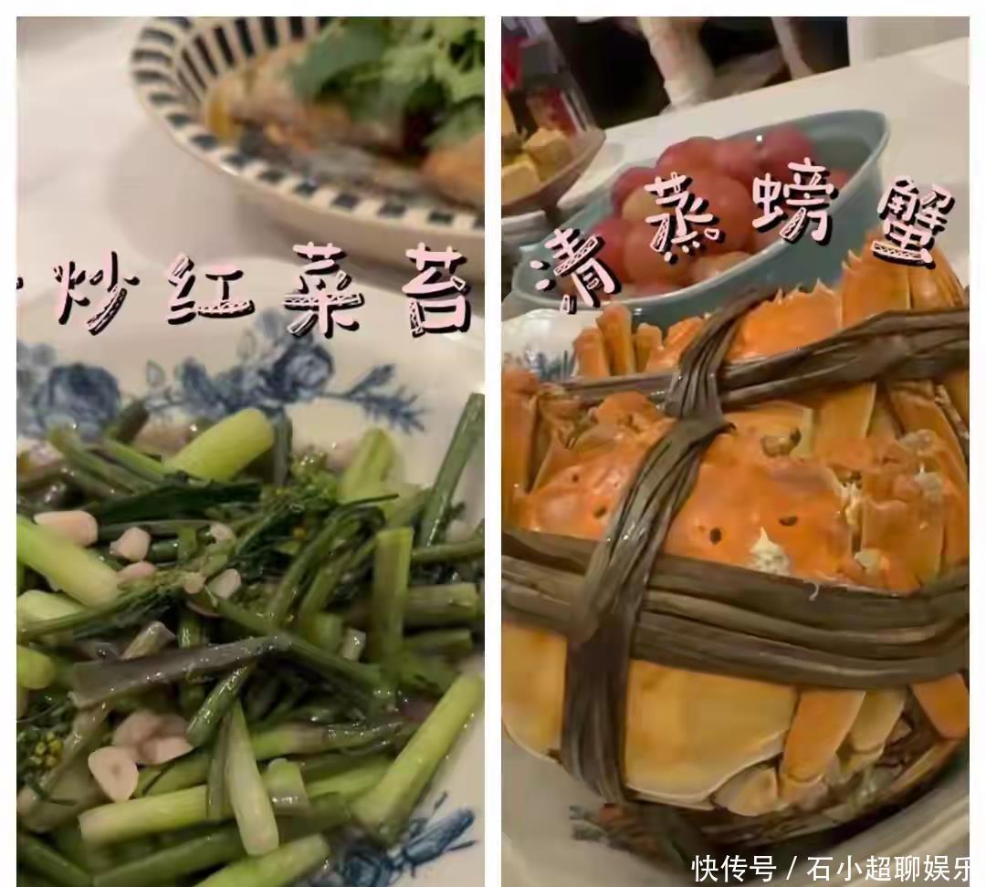 到了晚上,得给长身体的顶顶做丰盛晚餐,红烧牛肉、清蒸螃蟹、红烧带鱼,再炒俩青菜,一桌子菜看着就有食欲。